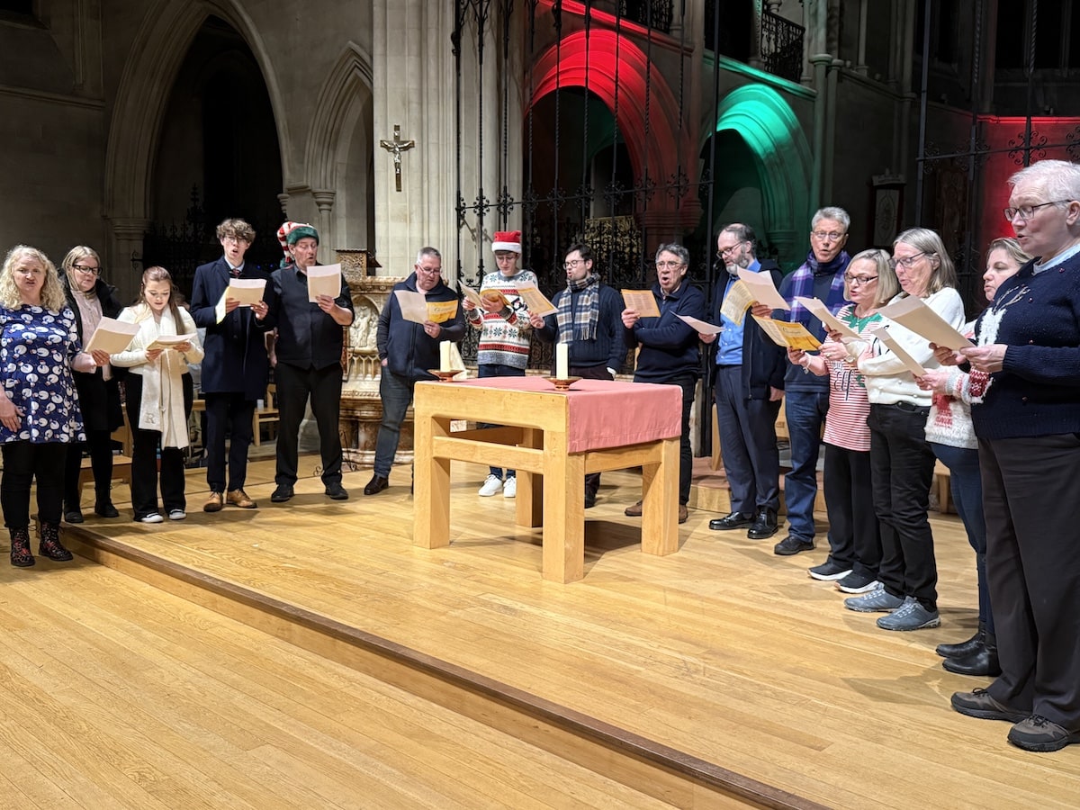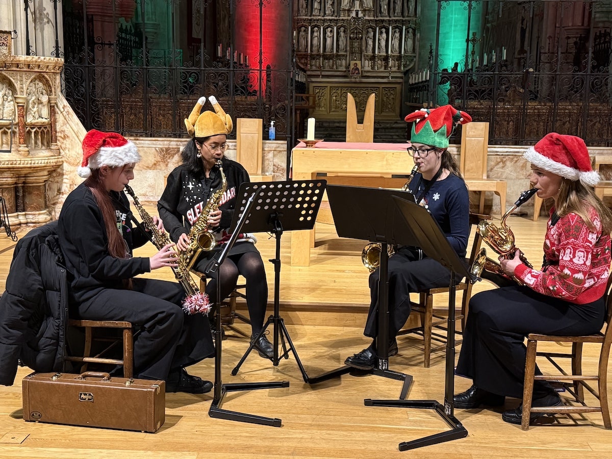 A super sax quartet from Northampton School for Boys got proceedings underway. Our own choir seniors then led the crowd in a hearty carol singing session.