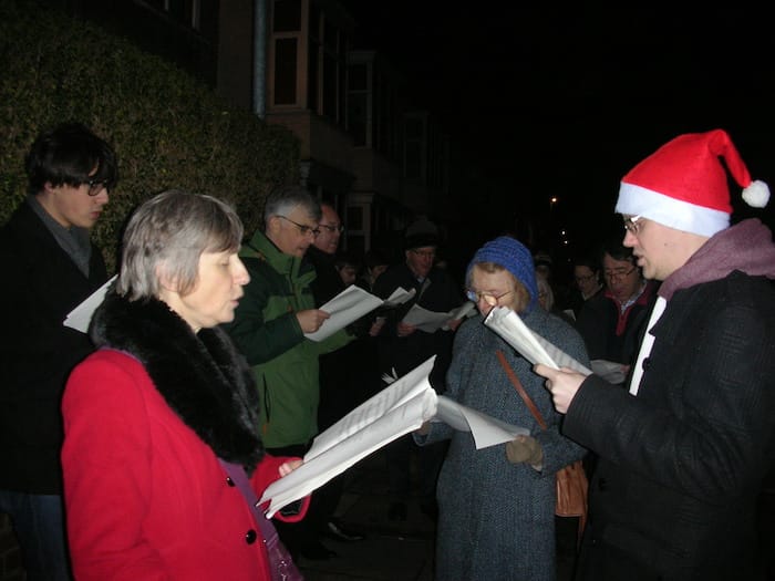 and torches clutched tightly in hand, and stopping at least twice in every street, we sang a selection of carols to local residents.