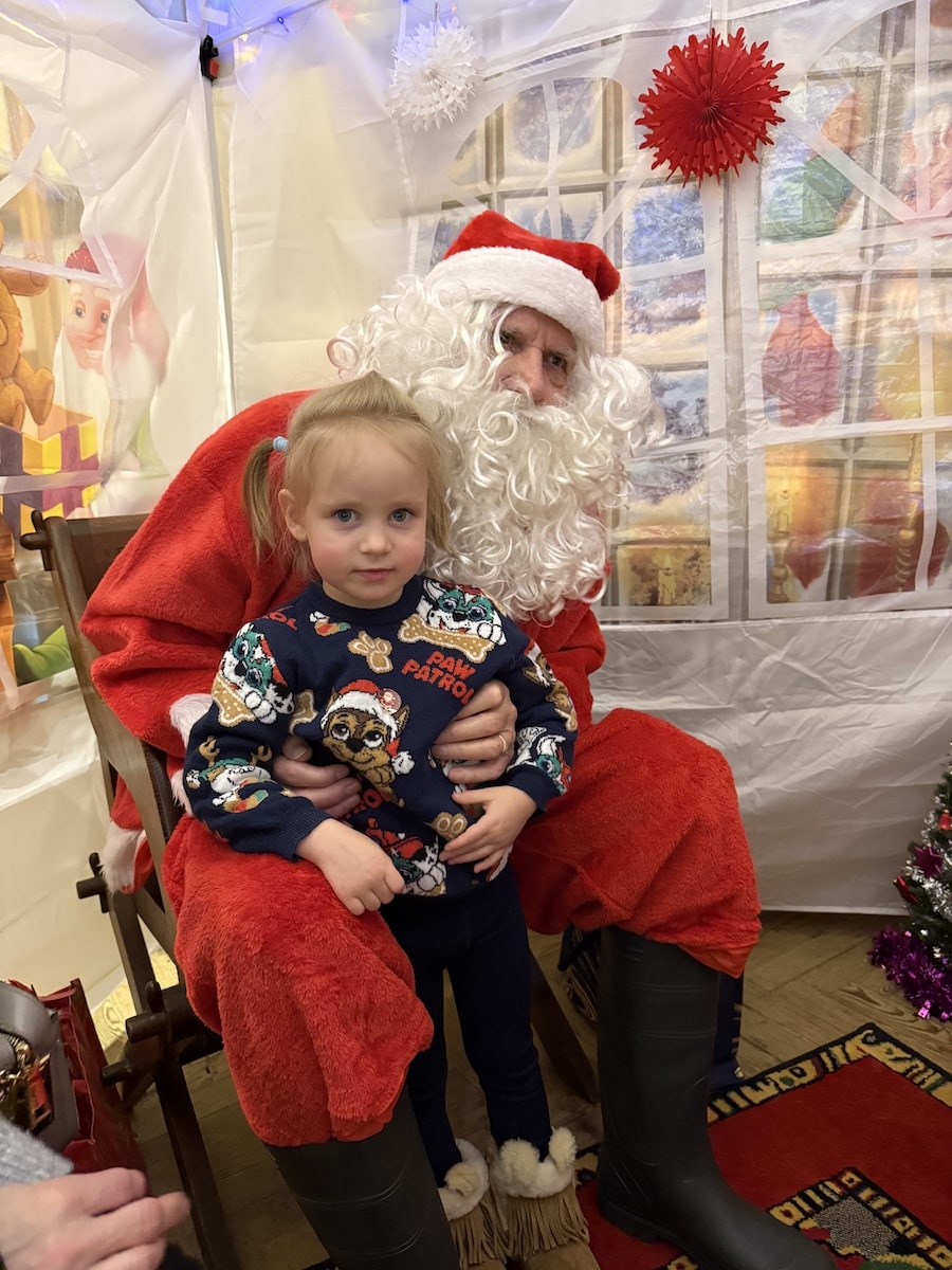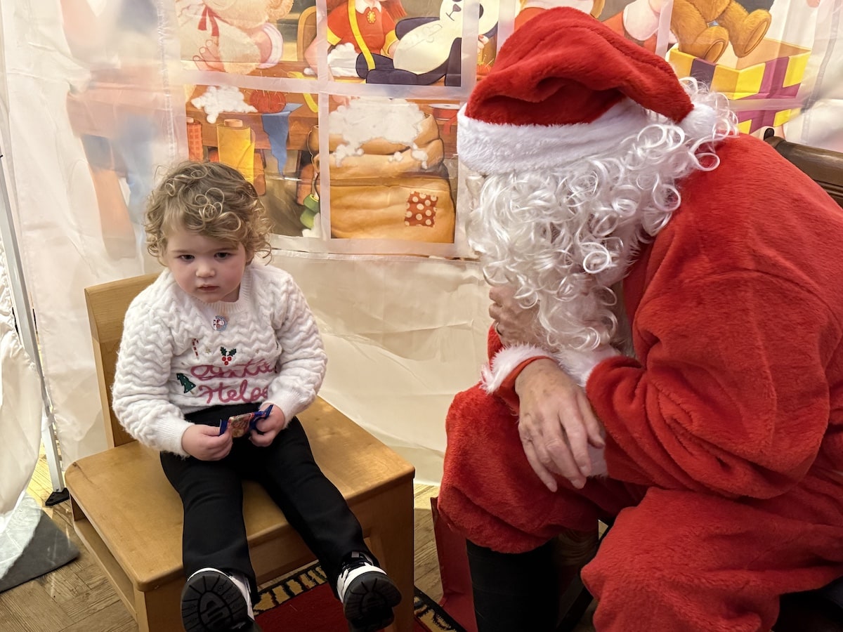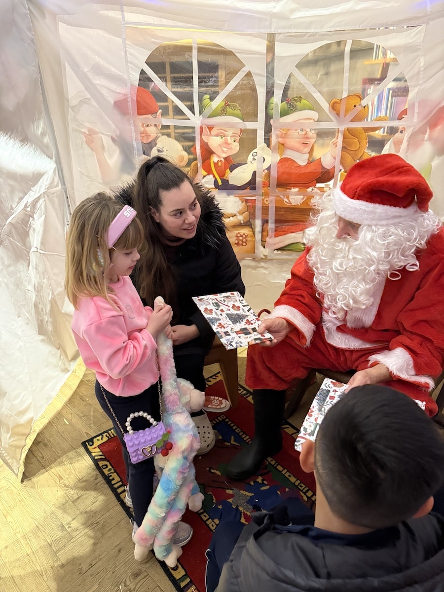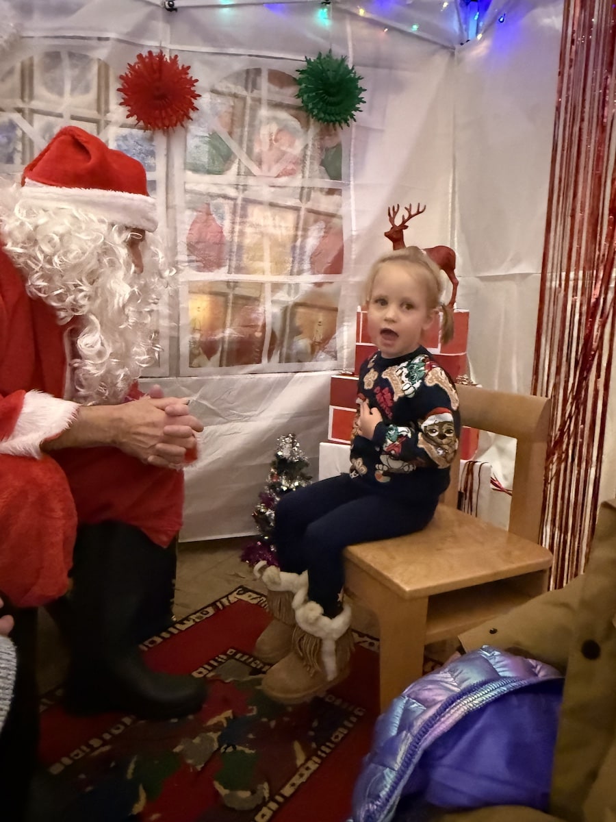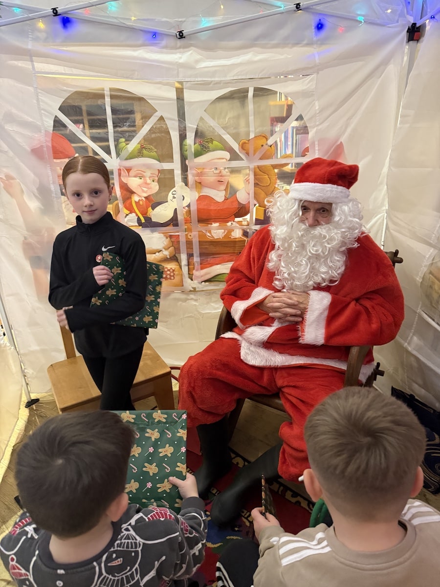 Santa and his glamourous elf assistant worked non-stop with children queueing from minute one.