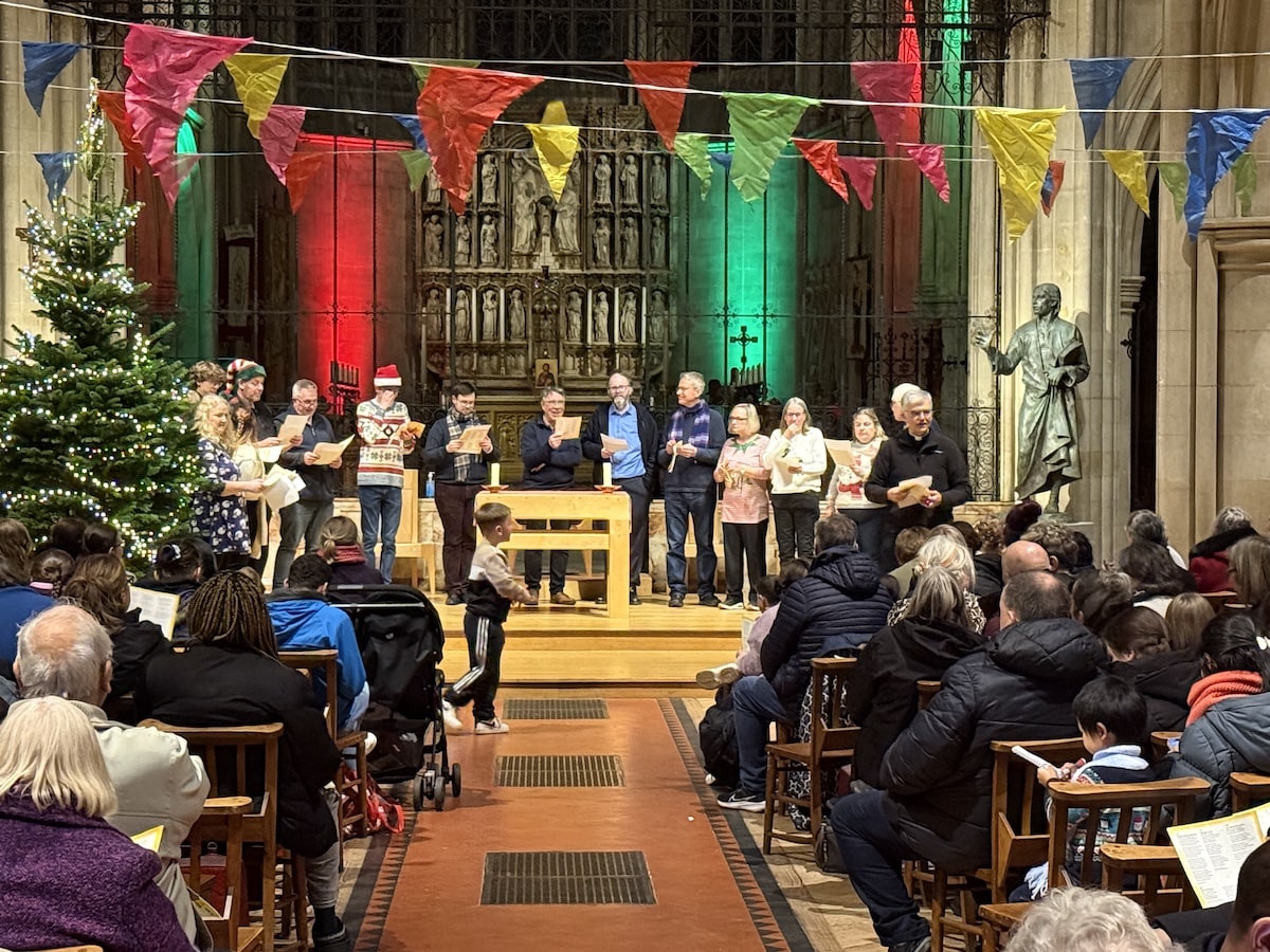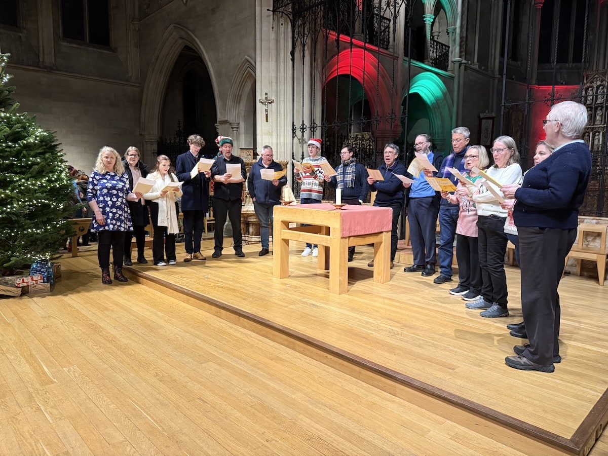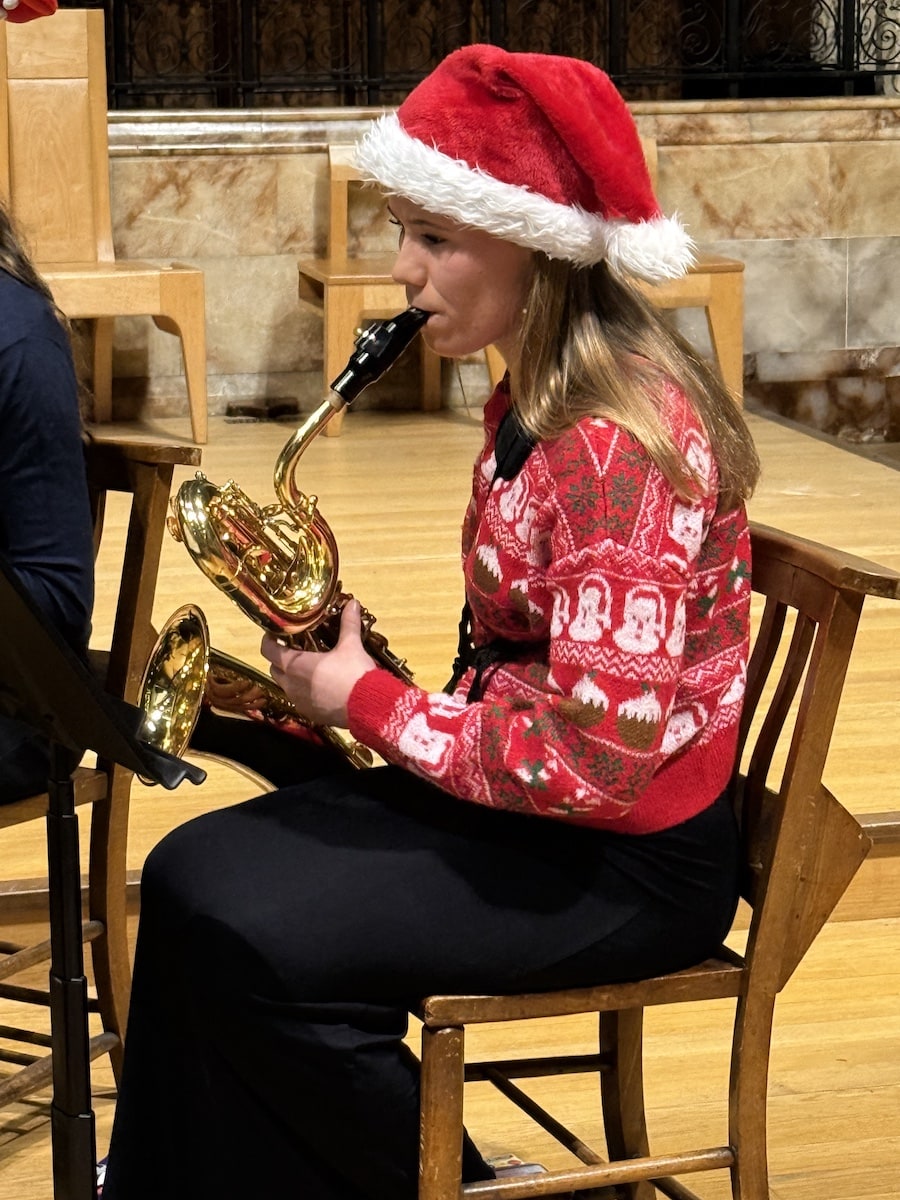 A super sax quartet from Northampton School for Boys got proceedings underway. Our own choir seniors then led the crowd in a hearty carol singing session.